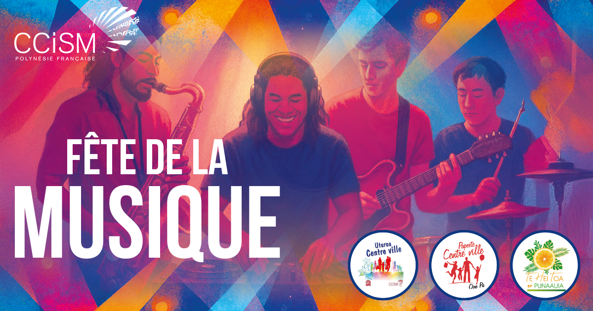 La CCISM, en partenariat avec les associations de commerçants Papeete Centre-Ville (PCV), Uturoa Centre-Ville (UCV) et Te Hei Toa no Punaauia (THTNP), organise la Fête de la Musique à Tahiti et Raiatea.