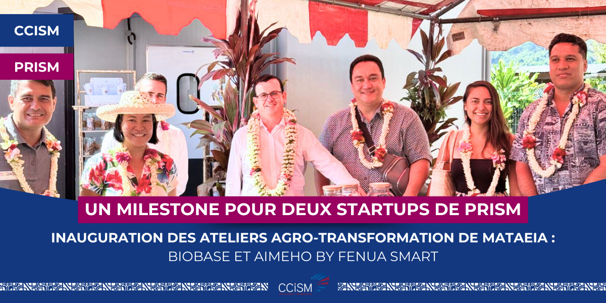 Hier matin, la CCISM et son incubateur PRISM ont assisté à l’inauguration des ateliers d’agro-transformation de Mataiea, organisée par la Direction de l'Agriculture de Polynésie française, où deux ateliers ont été attribuées aux startups Aimeho by Fenua Smart et Biobase Tahiti.