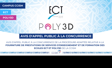 Avis d’appel public à la concurrence de la procédure adaptée relative à la fourniture de prestations de services d'enseignement et de formation des écoles ECT et POLY3D de la CCISM