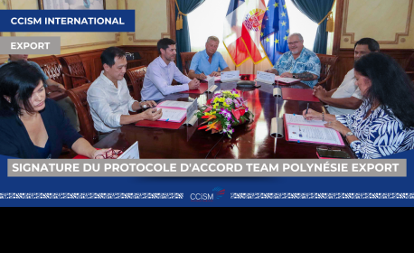 La CCISM Polynésie est fière d'annoncer la signature du protocole d’accord "Team Polynésie Export", en présence de Moetai BROTHERSON, Président de la Polynésie française, et d’Eric SPITZ, Haut-commissaire de la République. Cet accord réunit plusieurs partenaires, dont Business France, Bpifrance, l’Agence de développement économique (ADE), et la CCISM, représentée par notre président, Kelly ASIN-MOUX.
