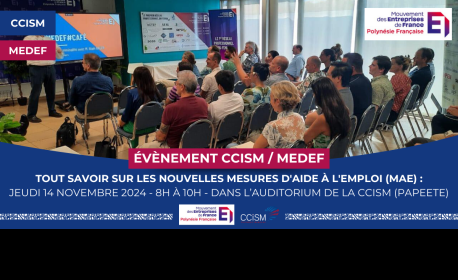 Le MEDEF Polynésie et la CCISM vous invitent à une matinée d’information dédiée aux nouvelles Mesures d'Aide à l'Emploi (MAE).