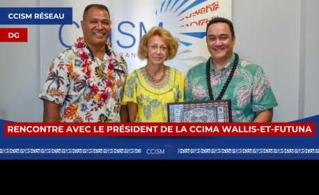 En l’absence du Président de la CCISM, M. Kelly Asin-Moux, empêché, le Directeur général, Heiarii DURAND et la Directrice générale adjointe, Véronique MARTINEZ-SOLA, ont échangé avec M. Otilone TOKOTU’U, le Président de CCIMA Wallis et Futuna, lors d’une rencontre protocolaire visant à prendre contact et à mieux appréhender les dynamiques propres des institutions consulaires de Polynésie française et de Wallis et Futuna.