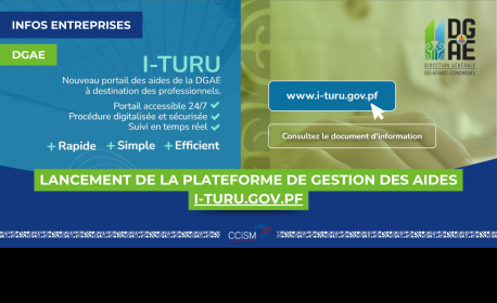 Entreprises, depuis le 16 septembre 2024, « I-TURU », le tout nouveau portail en ligne, est là pour simplifier vos démarches de demande d'AEPE (Aide à l’Équipement des Petites Entreprises) et d'APCR (Aide à la création et à la revitalisation des Petits Commerces et des Restaurants).