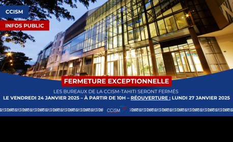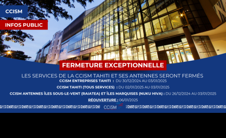 Les bureaux de la CCISM-Tahiti, ainsi que l’incubateur PRISM, seront exceptionnellement fermés :