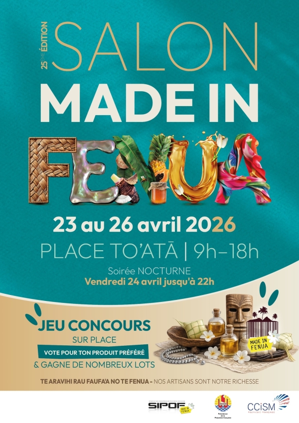 En 2026, le Salon Made in Fenua, porté par la CCISM, revient là où tout résonne le plus fort : Place To'ata, du 23 au 26 avril 2026.