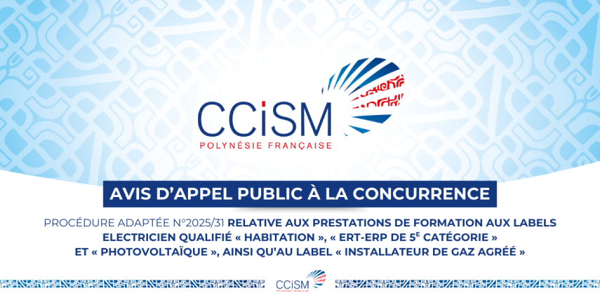 AVIS D'APPEL A LA CONCURRENCE - Procédure adaptée n°2025/31 relative aux prestations de formation aux labels Electricien qualifié « Habitation », « ERT-ERP de 5e catégorie » et « Photovoltaïque », ainsi qu’au label « Installateur de gaz agréé »> Lire la suite