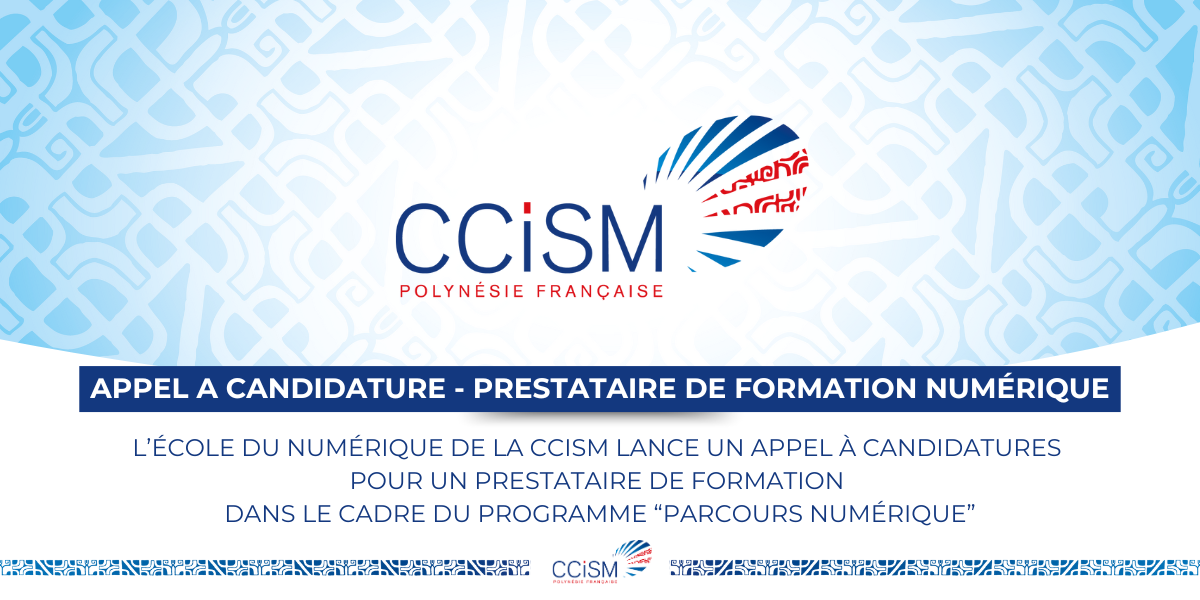 APPEL A CANDIDATURE - Prestataire de formation numérique L’ École du Numérique de la CCISM lance un appel à candidatures pour un prestataire de formation dans le cadre du programme “Parcours numérique”