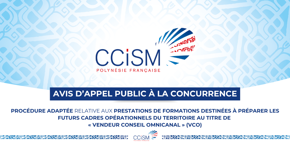 2° Nom et coordonnées de l'acheteur : Chambre de Commerce, d'Industrie, des Services et des Métiers, 41 rue du Docteur Cassiau - 98713 PAPEETE- TAHITI – POLYNÉSIE FRANÇAISE, BP 118 – 98 713 Papeete, Tel. : + 689 40.47.27.00, courriel : marchespublics@ccism.pf.