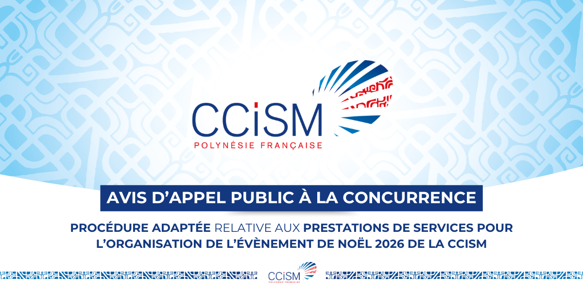 2° Nom et coordonnées de l'acheteur : Chambre de Commerce, d'Industrie, des Services et des Métiers, 41 rue du Docteur Cassiau - 98713 PAPEETE- TAHITI – POLYNÉSIE FRANÇAISE, BP 118 – 98 713 Papeete, Tel. : + 689 40.47.27.00, courriel : marchespublics@ccism.pf.