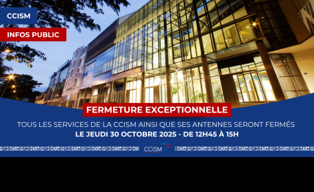 Tous les services de la Chambre de commerce (CCISM), ainsi que ses antennes, seront exceptionnellement fermés le Jeudi 30 octobre 2025 de 12h45 à 15h.
