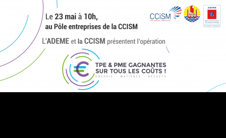 L'ADEME et la CCISM vous présentent l'opération "TPE & PME gagnantes sur tous les coûts !" Elle s’inscrit dans le cadre de la mission de l’ADEME de favoriser la transition énergétique et écologique et s’appuie sur de récentes opérations ayant démontré l’intérêt économique immédiat pour les entreprises de mettre en œuvre des actions d’optimisation de leurs flux. Rendez-vous ce mercredi 23 mai, à 10h au Pôle Entreprises de la CCISM et soyez les premiers à bénéficier de cet accompagnement qui ne peut que rapporter !