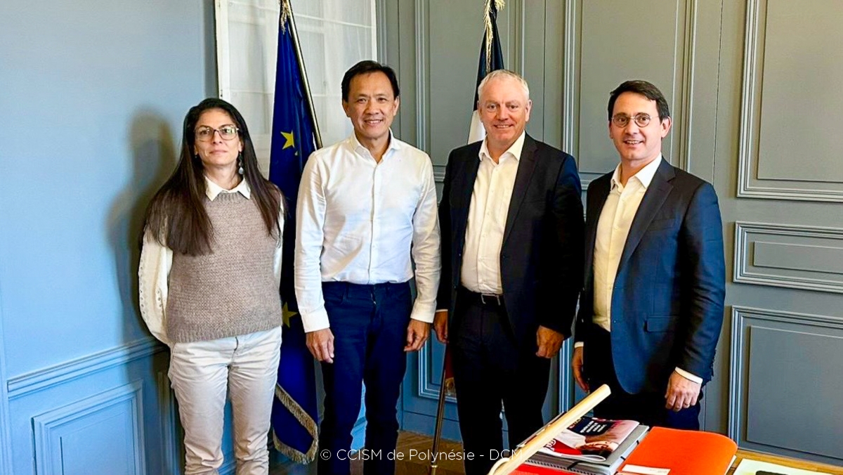 Dans la continuité des rencontres de la mission en métropole, le président de la CCISM Kelly ASIN-MOUX a échangé avec Joël FOURNY, président de CMA France, aux côtés de leurs directeurs généraux respectifs : Taina DENIS (CCISM) et Julien GONDARD (CMA France).