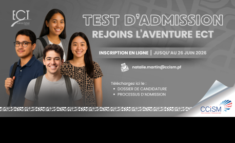 Bachelier et étudiant post-BTS tente ta chance à la dernière session du concours d’entrée. Formations en modules innovants, numérique, économie. L’École de Commerce de Tahiti prépare à relever les défis du monde professionnel.