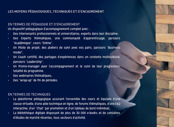 - Être titulaire d’un Bac+4 (ou d’un titre de Niveau II équivalent) et être professionnel, généralement âgé de plus de 30 ans, avec un minimum de 4 ans d’expérience à un poste de dirigeant ou de manager expérimenté.